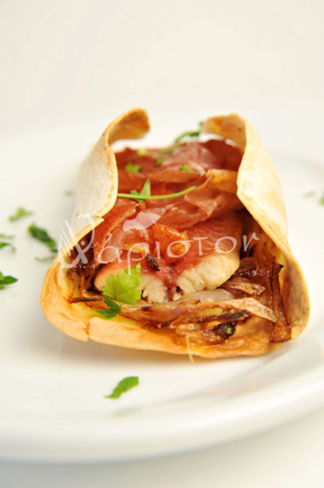 Με Καπνιστό ψάρι, γραβιέρα, ντοματα και sour Cream